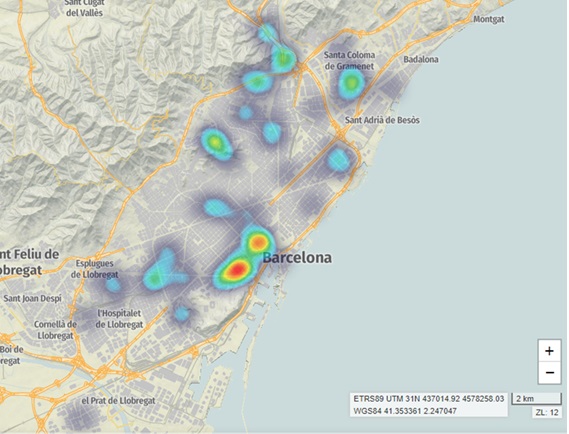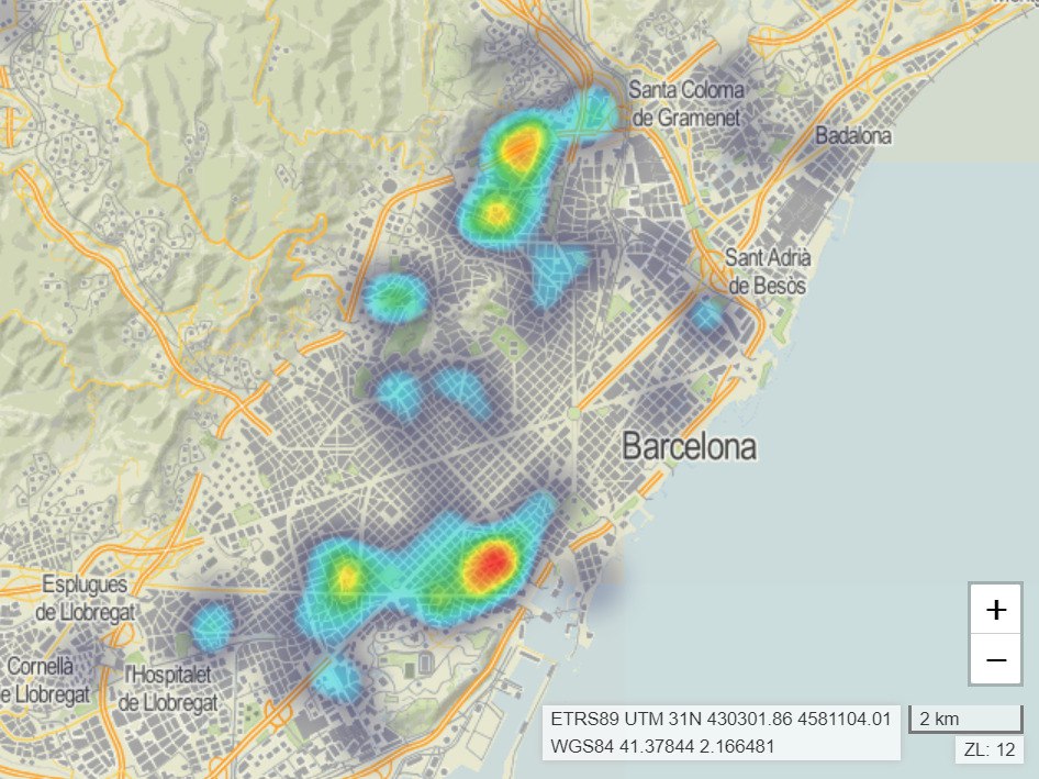 A la ciutat de Barcelona, tornen a destacar com a punts calents els barris cèntrics del Raval, el Gòtic, Sant Antoni i el Poble Sec, on la lluita dels sindicats barrials segueix activa contra els efectes de la gentrificació i la turistificació. El districte de Nou Barris continua sent l’altra zona més afectada de la ciutat, tot i que en menys intensitat. El districte de Sants-Montjuïc és la tercera zona que més destaca, tot i que en aquest any apareix un nou nucli, ja més enllà de Barcelona, a Santa Coloma de Gramenet.
