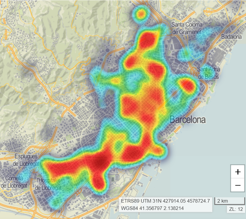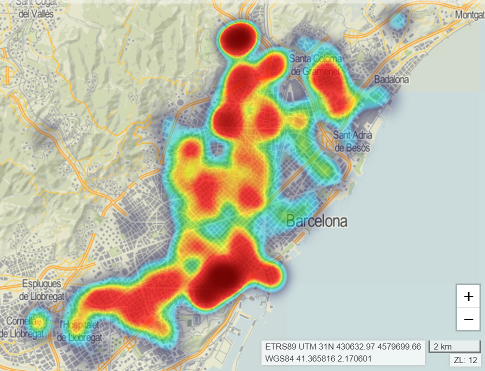 Geogràficament, els casos de desnonament es concentren de forma significativa al voltant del local de la PAH al barri d'Hostafrancs i els barris adjacents, incloent-hi també els d'Hospitalet. Això indica la importància de la lògica territorial i el factor de proximitat en l'organització de la lluita contra els desnonaments. Així mateix, els barris de Sant Antoni i el Raval destaquen com a punts calents, presumiblement per l'impacte de la gentrificació i la turistificació, i també barris perifèrics i de rendes baixes com ara a Nou Barris i a la Marina del Port.